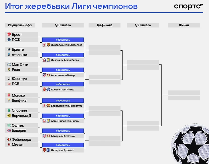 ● На первом же этапе плей-офф будет пара из одной страны. У «ПСЖ» не было шансов избежать встречи с соотечественниками – им все равно выпал бы кто-то из пары «Монако» и «Бреста». В итоге сыграют с «Брестом».