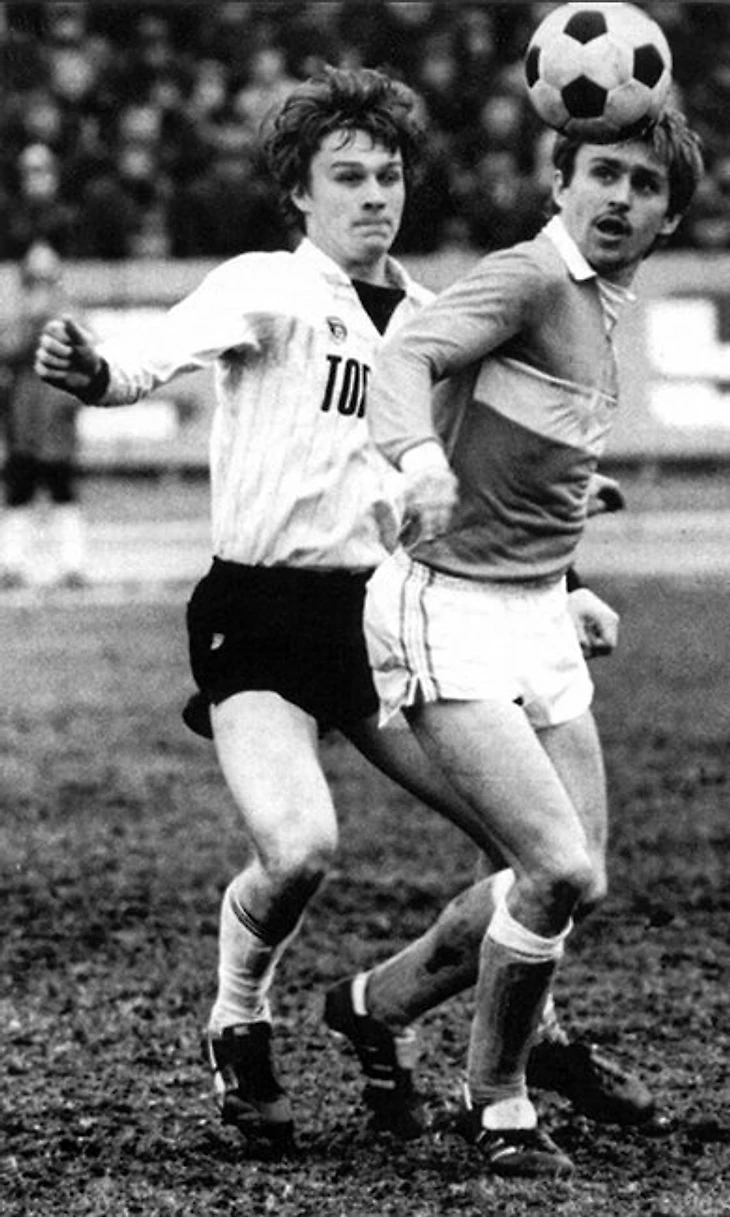 Рязань – тоже сильная: Гарник Авалян, который после 30 в Самару перешел. Салех Абдулкаюмов, поигравший за ЦСКА и «Локомотив» Игорь Коняев, Сергей Муштруев, который Кубок СССР выиграл за «Торпедо», выходил против «Штутгарта» с Клинсманном. Черно-белые тогда в гостях в Кубке Кубков победили 5:3, феерили братья Савичевы, а Муштруев окучил местную звезду – Сигурвинссона. Помню, как Николай Озеров кричал на всю страну про удалого рязанца. Но Муштруев рано травму получил, в 22 вернулся в Рязань – его [Валентин Козьмич] Иванов нагрузками прибил.