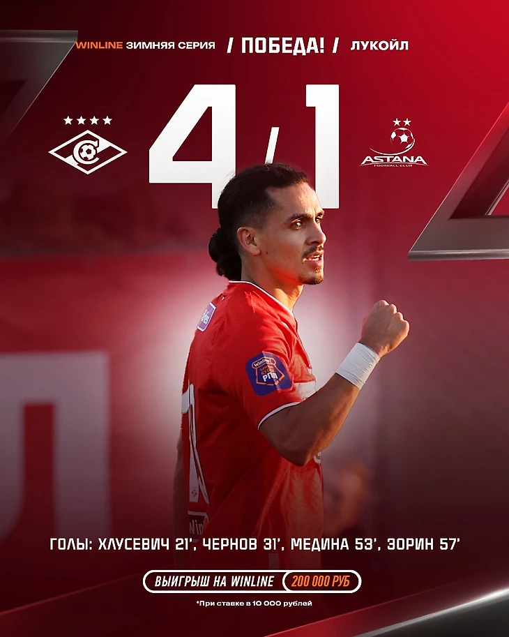 «Спартак» в товарищеском матче на сборе в ОАЭ разгромил «Астану» (4:1).