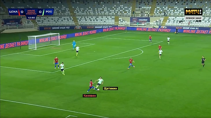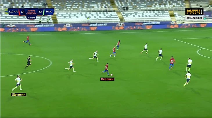 Если Облякова/Пьянича/Файзуллаева перекрывали, отдавал в ширину. У «Ростова» по крайним защитникам всегда играют две восьмёрки, поэтому несколько раз ЦСКА удачно выходил через Келлвена и Мойзеса, когда Щетинин с Комаровым не успевали.
