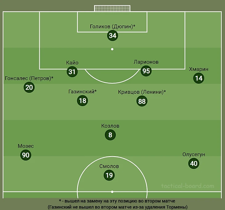 Каждый тренер использовал два полноценных состава и чаще замены производились одновременно. Поэтому разбираем отдельно отрезки, которые провели игроки старта (условно, первые таймы) и отдельно - игру выходящих на замену каждой из команд.