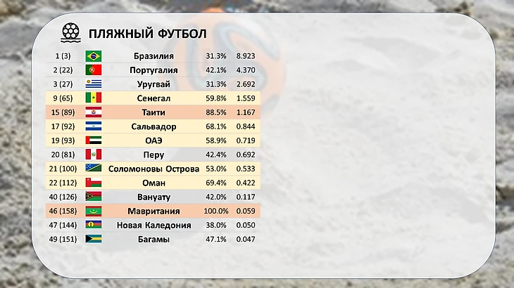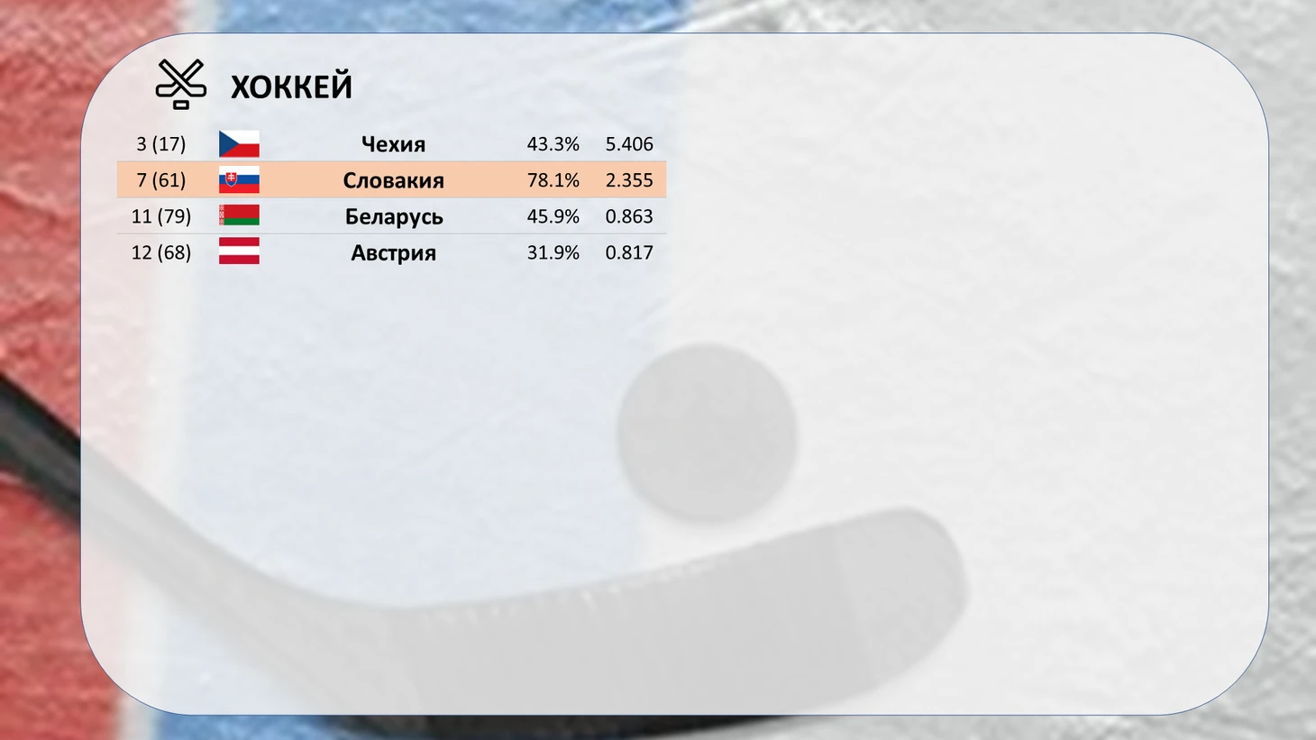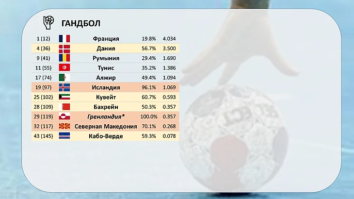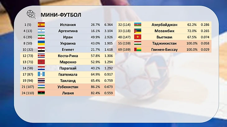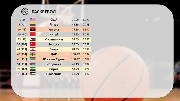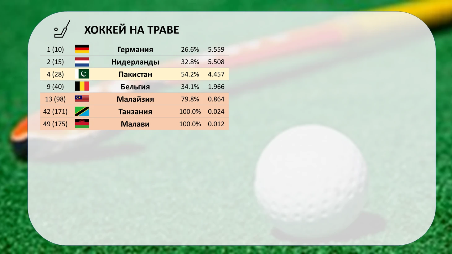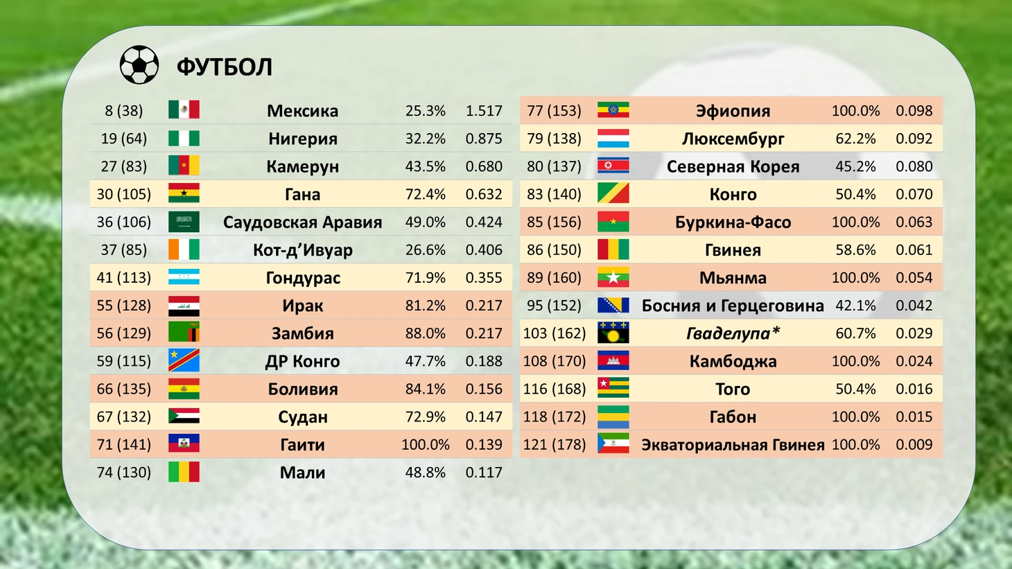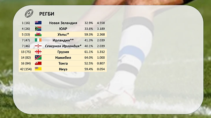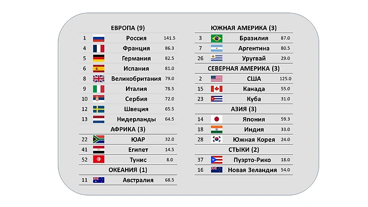 Рейтинг составлен по результатам мужских сборных (до женских пока не дошли руки, возможно, сделаю позже).