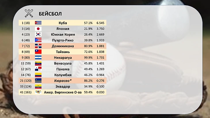 **Результаты Вест-Индии продублированы Тринидаду и Тобаго, Багамам и Барбадосу.
