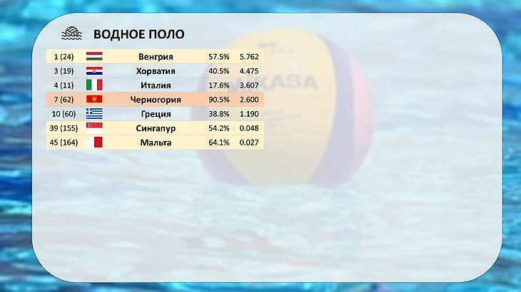 - Чехословакия - учитывается в Чехии (кроме водного поло – там результаты уходят Словакии)