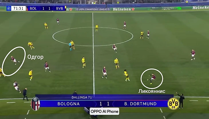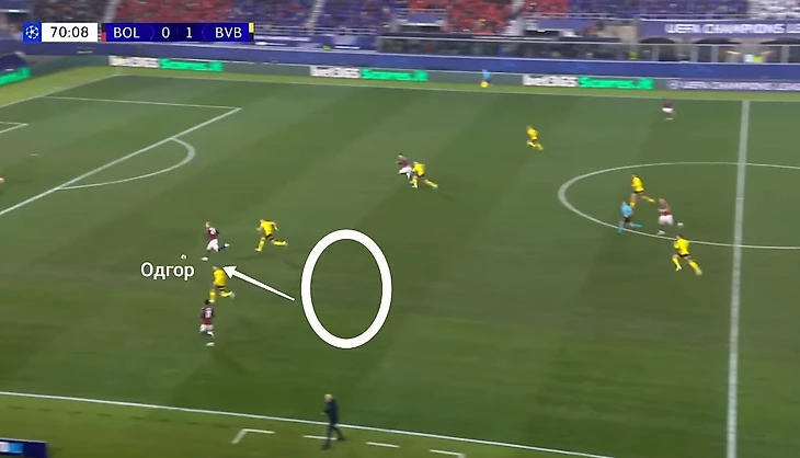 Лико запускает мяч со своей половины поля. Заслуга Одгора эквивалентна – открывание вышло идеальным. Еще одно касание – для передачи в центр – и БФК сравнивает счет в игре с Дортмундом в ЛЧ.