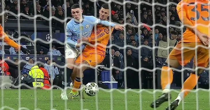 Спустя 20 минут меня посетило дежа вю - опять «Реал» играет лучше соперника, опять они пропускают первыми, опять они сравнивают и опять им ставят пенальти. А все потому, что Фоден при смещении со своего фланга обыграл Менди, но подоспел Себальос и въехал в него коленом на линии штрафной. Тюрпен такое свистит, а Холланд такое отправляет в нижний угол.