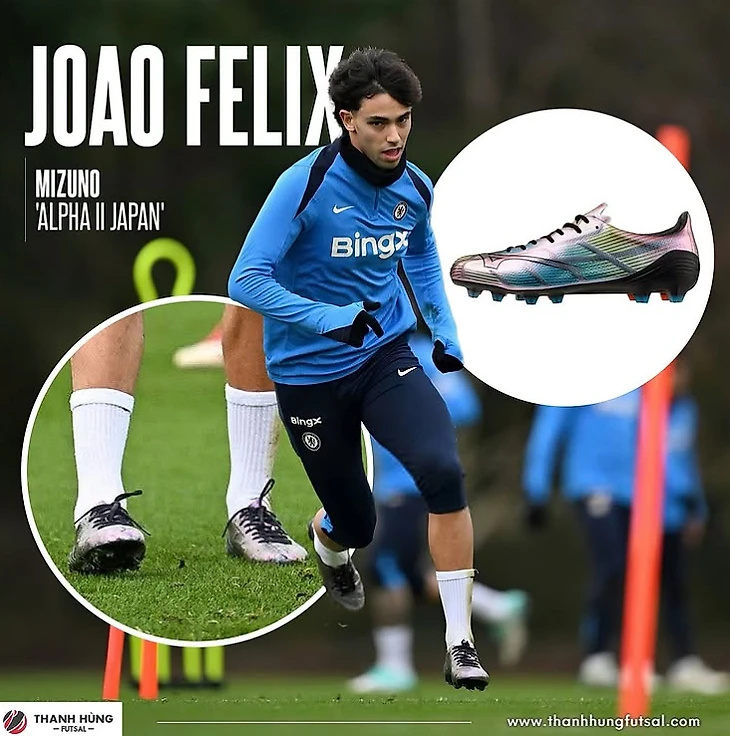 Выбор Жоау Феликса — модель MIZUNO α Ⅱ JAPAN, изготовленная в Японии. Это самые скоростные бутсы в истории бренда Mizuno. Новая конструкция с высокоадгезионной сеткой «ZEROGLIDE α MESH» на язычке, стельках, внутренней части верха и подкладке в области щиколотки снижает скольжение стопы во время игры, обеспечивая лучшее прилегание и малый вес обуви.