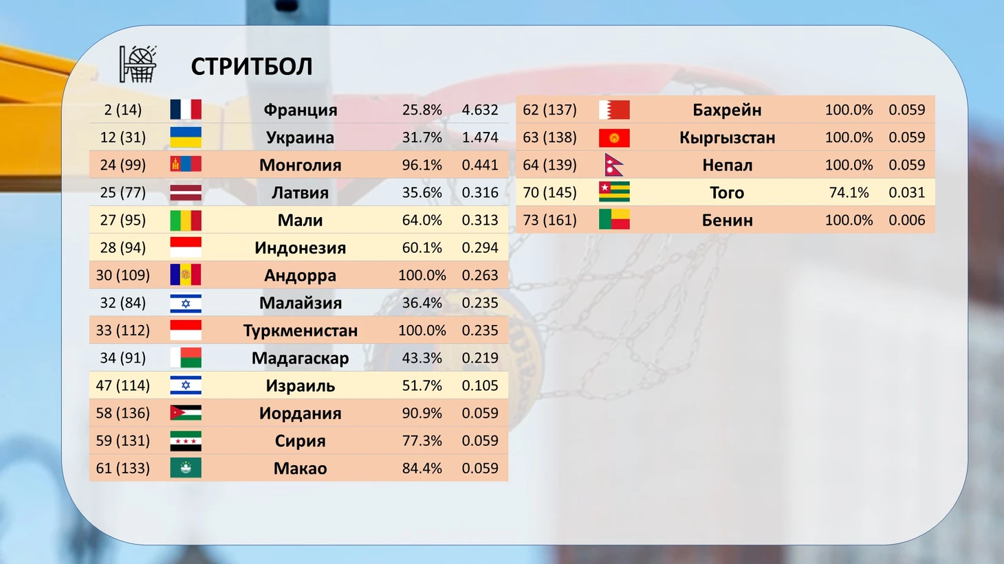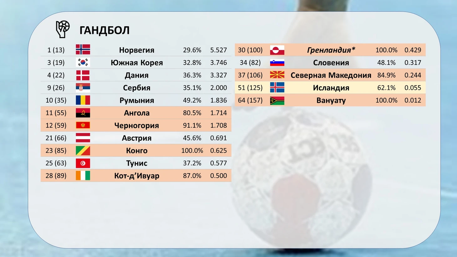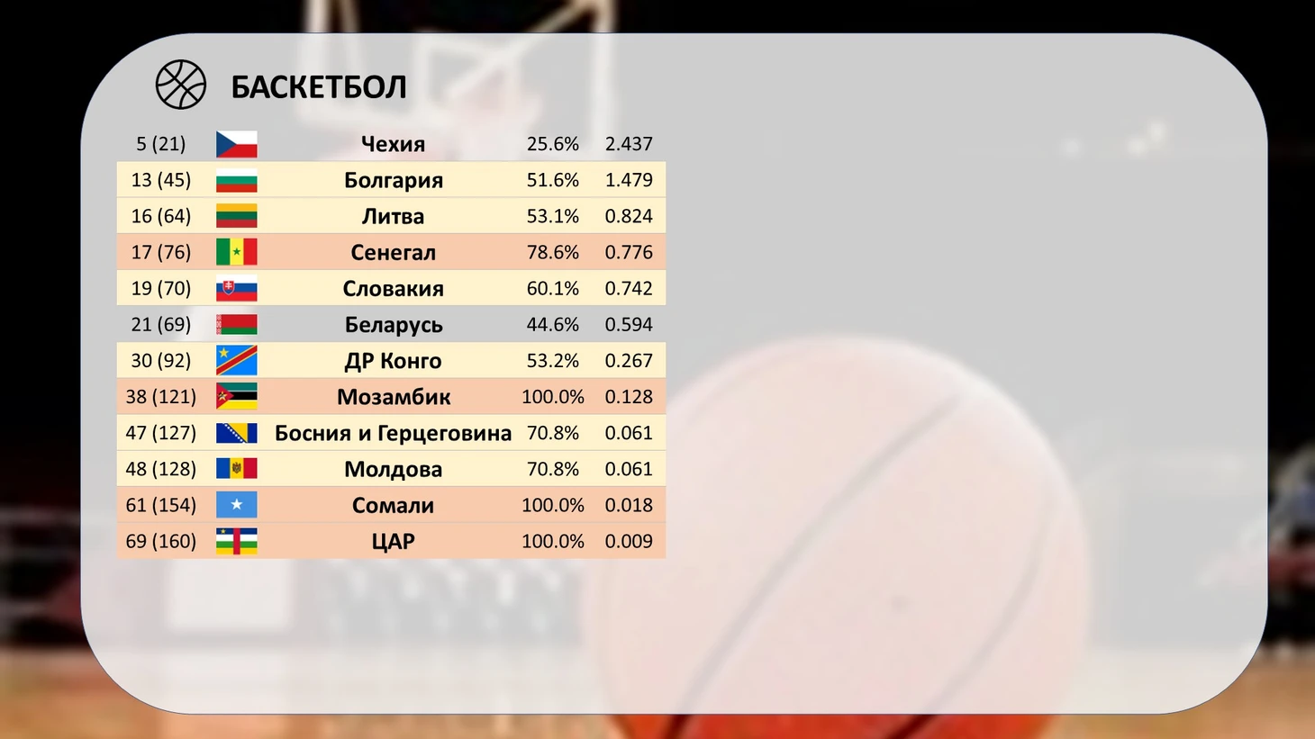 Анализ силы стран в командных видах спорта. Женщины. Часть 2