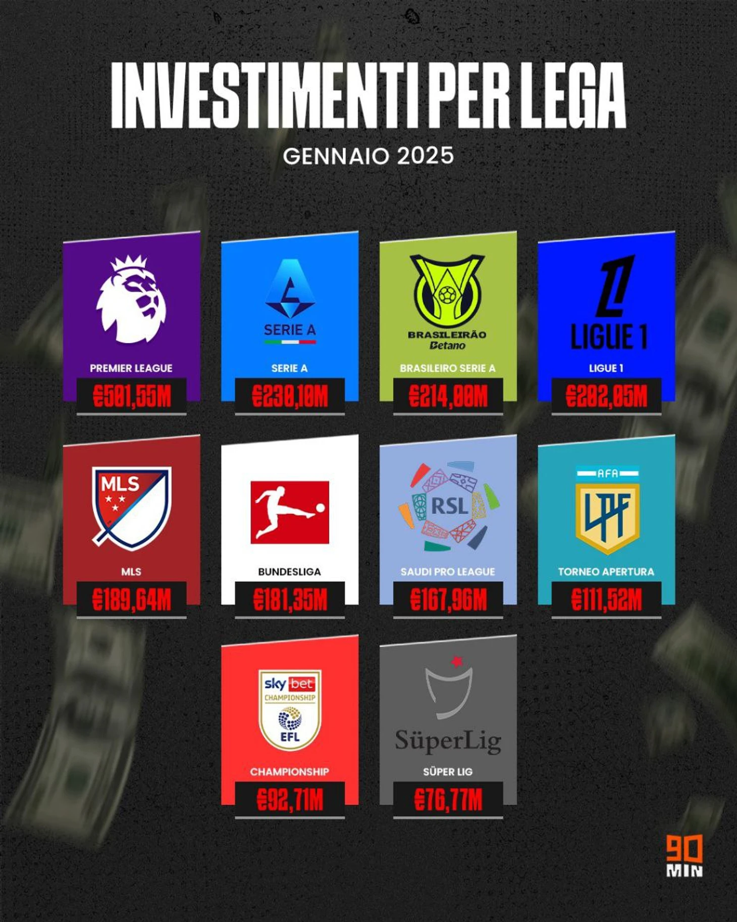Переходим к трансферам. За полтора месяца бразильцы потратили очень много – до конца января уступали лишь АПЛ, потом неожиданно тряхнула мошной другая Серия А-итальянская.
