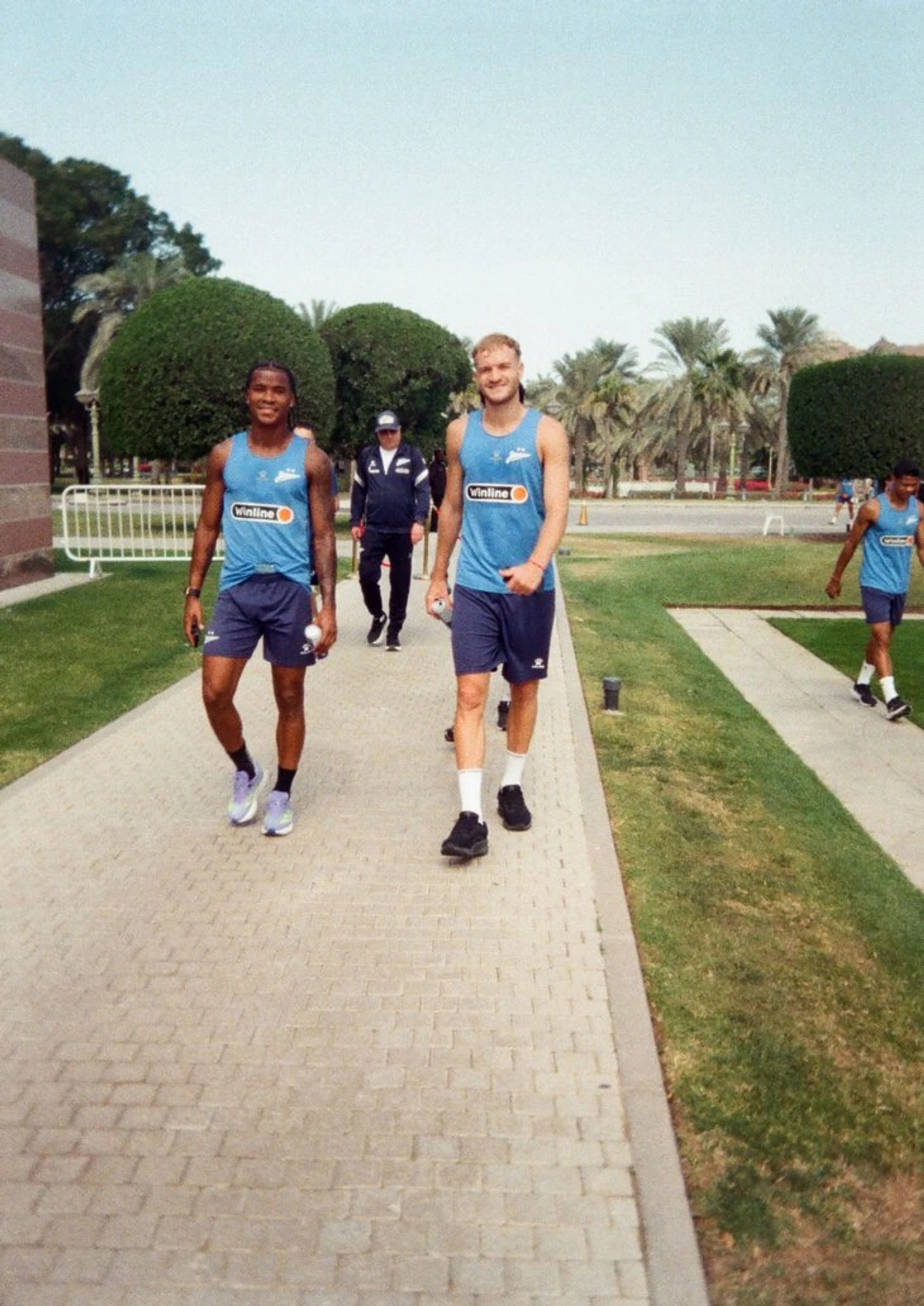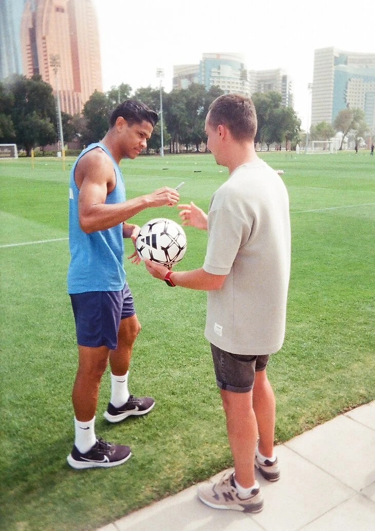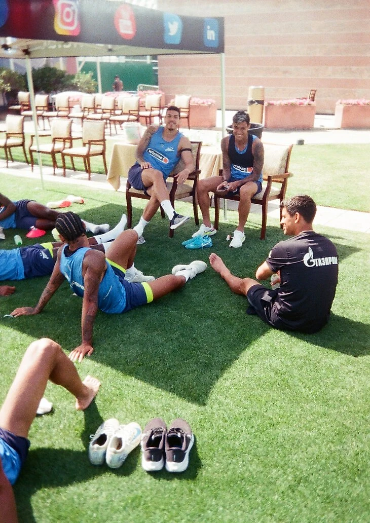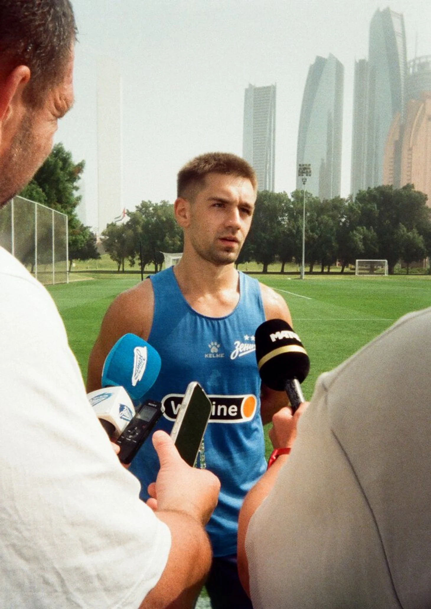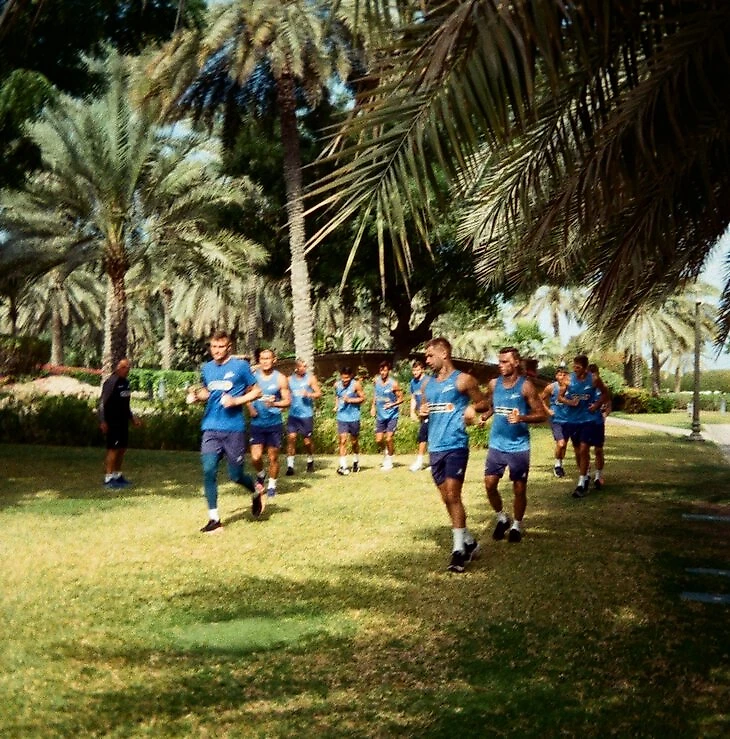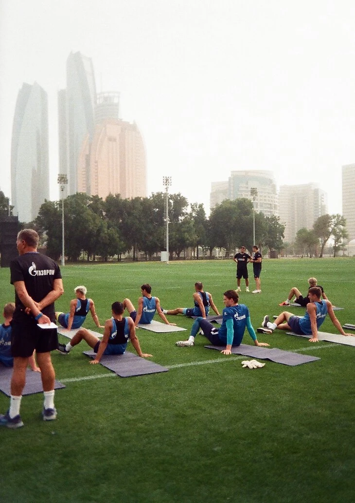 Для этого мы взяли пленочный фотоаппарат, передали его «Зениту» и попросили футболистов клуба самим снимать все вокруг себя на сборах: тренировки, друг друга, виды. Этой зимой «Зенит» вместе с рядом других команд РПЛ ездил в Абу-Даби на Winline Зимний кубок, поэтому точно видел много интересного.