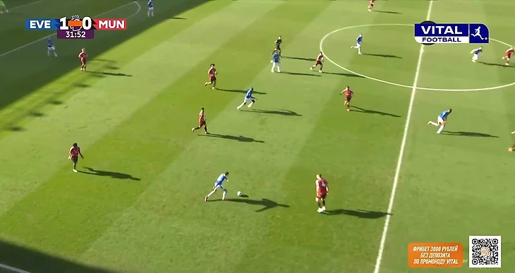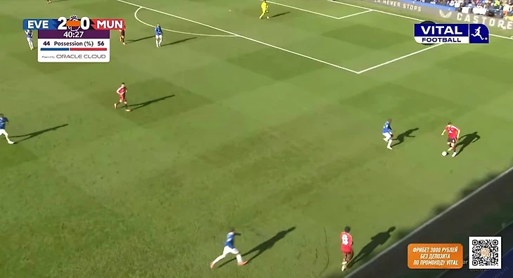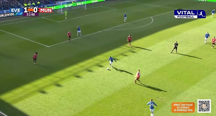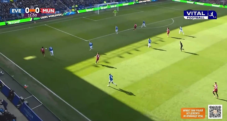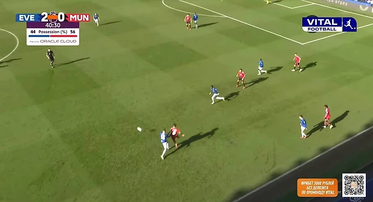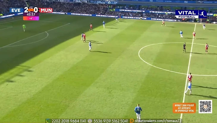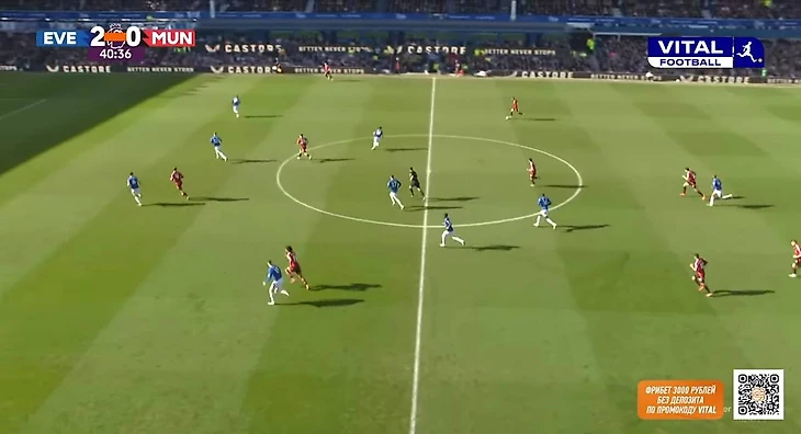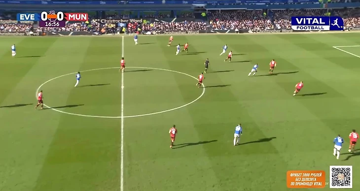 Из примечательных и положительных моментов в обороне можно выделить несколько подстройку под «Эвертон» и ограничение команды в развитии. Линдстрем не всегда располагался широко, а смещался в полуфланги для получения мяча. Проблему решили за счет Бруну: португалец опускался в полузащиту, а вместе с поднятием Далота по своему флангу схема приобретала вид 4-4-2.
