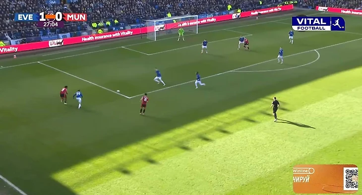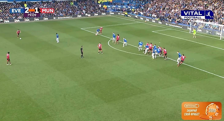 В моменте со вторым результативным стандартом оборона «Эвертона» не доглядела за Угарте - уже в самом начале эпизода за уругвайцем никто не приглядывал, зона подбора оказалась полностью свободной., чем и воспользовался опорник «МЮ».
