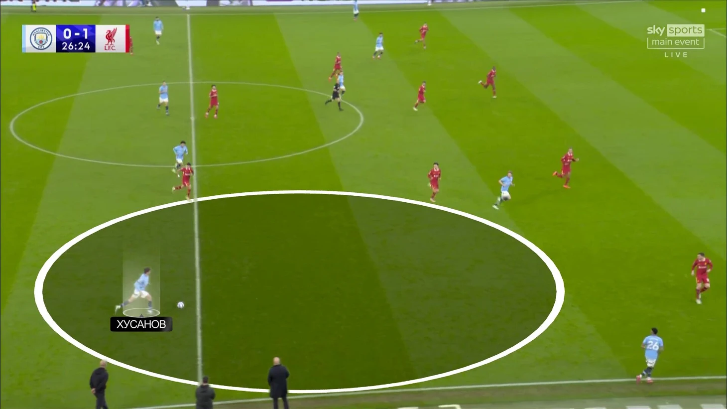 Ему давали больше свободы, накрывали не сразу и только в случае небрежной обработки. Разумеется, главной проблемой был не Хусанов, а заточенность плана «Сити» на левый фланг. У команды было только одно желаемое направление.