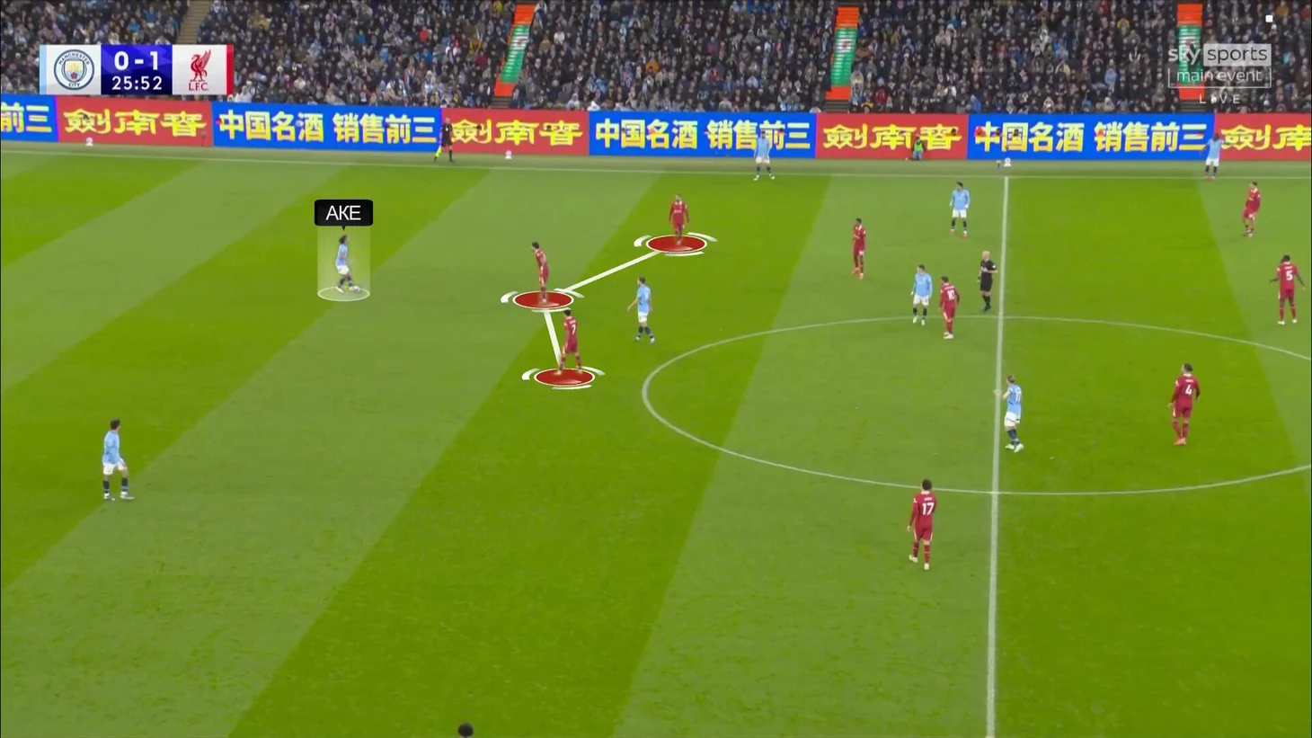 Вот так «Ливерпуль» перекрывал линии паса, когда с мячом оказывался Натан Аке.