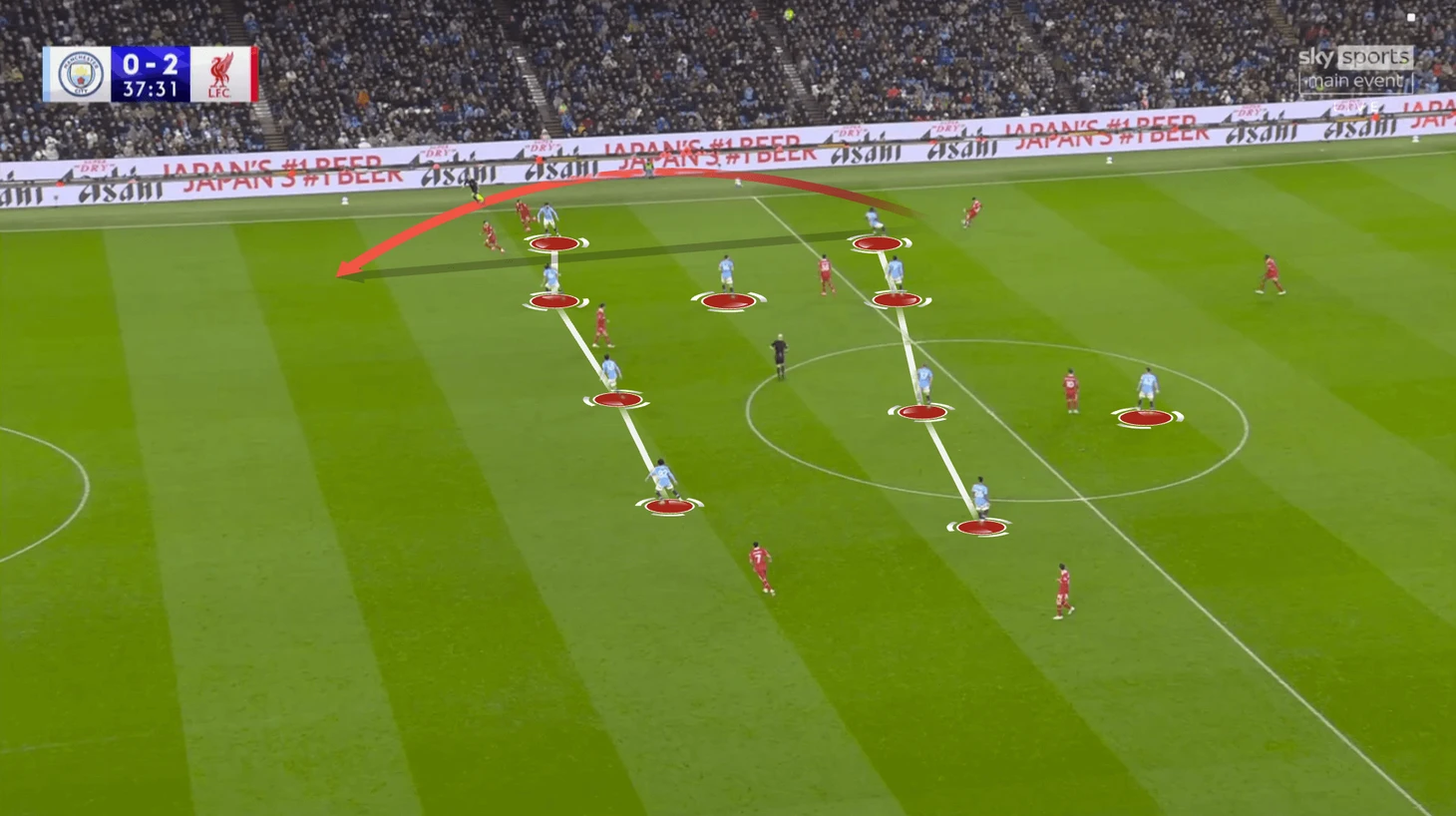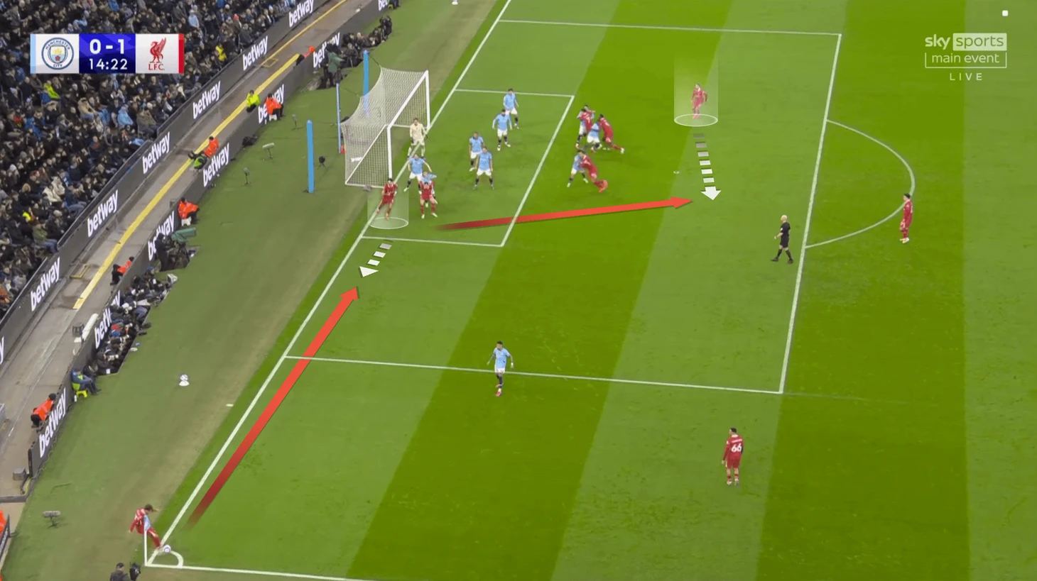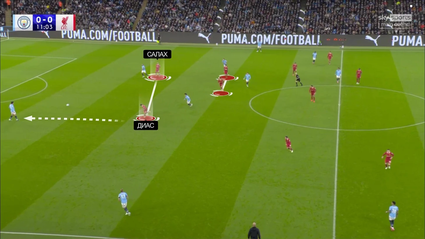 В то же время неспособность Хусанова опасно пасовать через более разряженную зону не помогала. «Ливерпуль» прочитал соперника – и очень по-разному реагировал на центральных защитников «Сити».