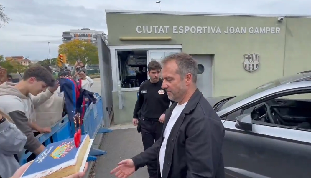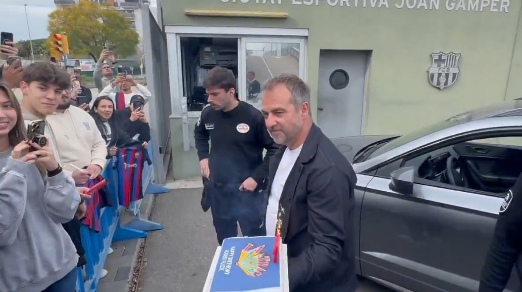 Фаны «Барсы» подловили Флика после тренировки, чтобы поздравить с юбилеем: что подарили?