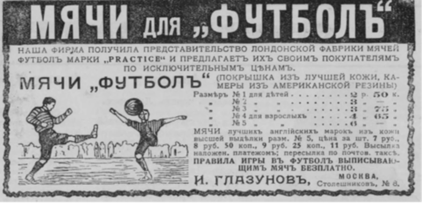«— Папаша, мнѣ необходимы штиблеты для футбола! —Да у тебя же есть штиблеты? — Эти не годятся. Я ихъ въ два раза о мячъ разорву. Нужны специальныя. Съ шипами и толстой-претолстой подметкой!...», - цитирует журналист ставший типичным диалог для дачных семей.