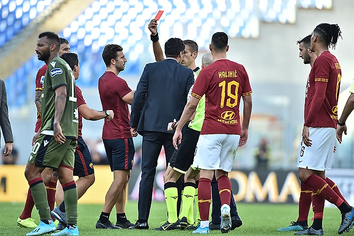 В октябре 2019-го Фонсека тоже получил красную за споры с Давиде Массой из-за отмены гола форварда Николы Калинича против «Кальяри». Тогдашний тренер «Ромы» кричал в лицо, никак не мог успокоиться. Даже Александар Коларов отгонял тренера от рефери. В итоге португальца дисквалифицировали на два матча – он сразу извинился: