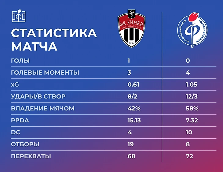 С первых минут второго тайма «Факел» заметно активизировался в прессинге, как во 2/3 поля, так и в финальной трети, что подтверждает показатель PPDA — 7.32.