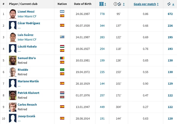 До отметки в 100 голов за клуб ему осталось всего семь мячей. Учитывая, что форвард проведет в команде как минимум еще один сезон, он вполне может войти в топ-10 лучших бомбардиров «Барсы» – надо 28 мячей.