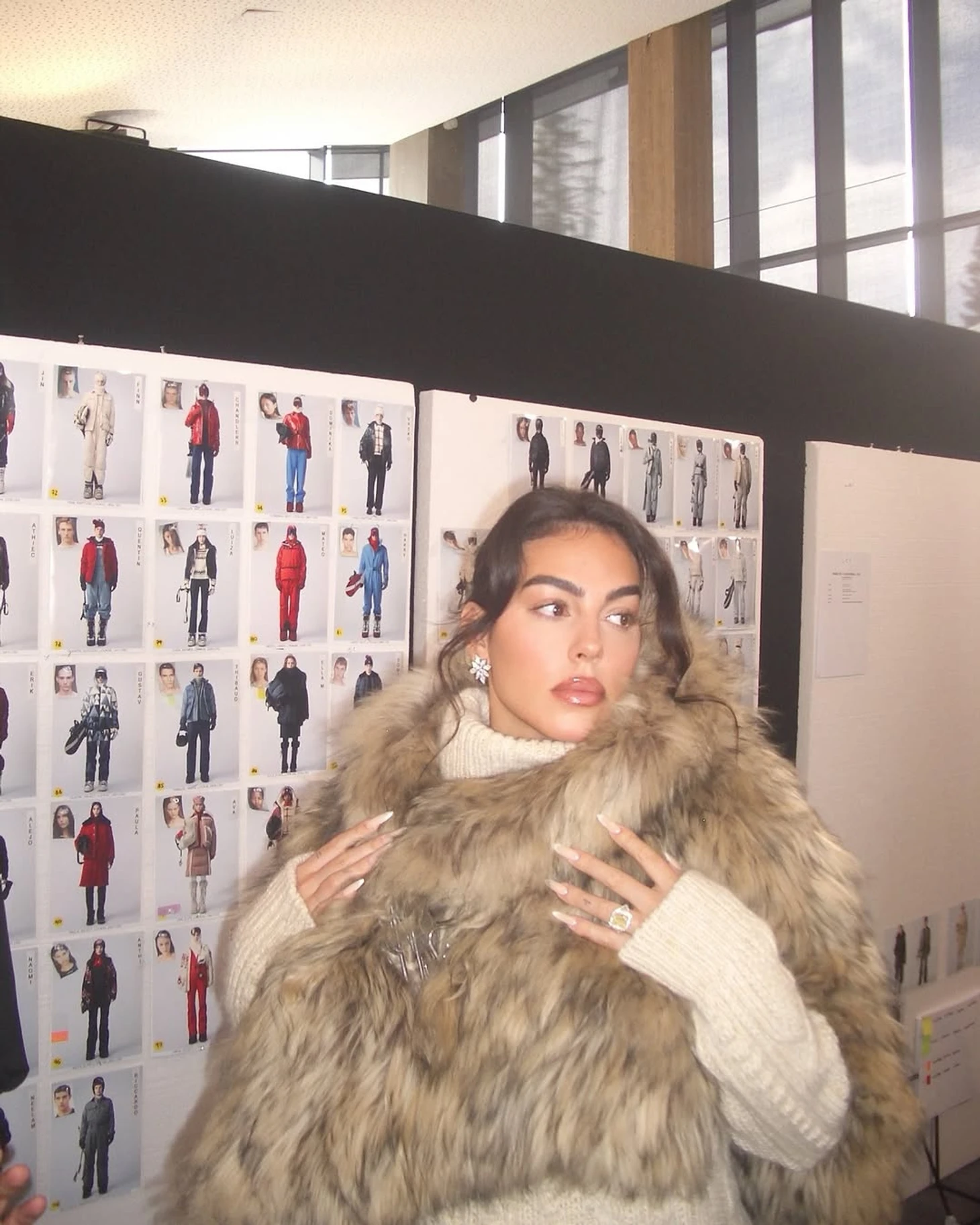 Роскошная Джорджина Родригес продолжает покорять мир высокой моды. Невеста Криштиану Роналду приняла участие в показе модного дома Moncler в Куршевеле.