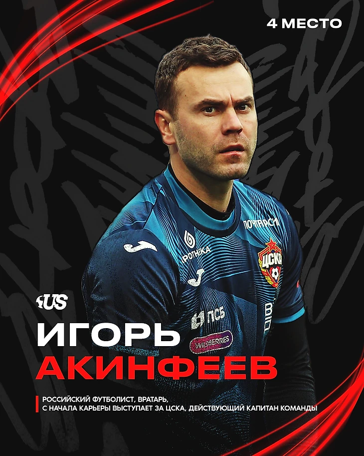 Играющая легенда ЦСКА и всего Российского футбола! Своей игрой поставил себя в один ряд с великими вратарями пошлых лет и в дворовых футбольных баталиях дети называют себя Акинфеевым. Действующий капитан ЦСКА, Шестикратный чемпион России, семикратный обладатель Кубка России, семикратный обладатель Суперкубка России, обладатель Кубка УЕФА, Бронзовый призёр чемпионата Европы 2008 года и одиннадцатикратный обладатель приза «Вратарь года» имени Льва Яшина. Единственный вратарь в истории советского и российского футбола, сыгравший 300 матчей «на ноль». ЛЕГЕНДА!