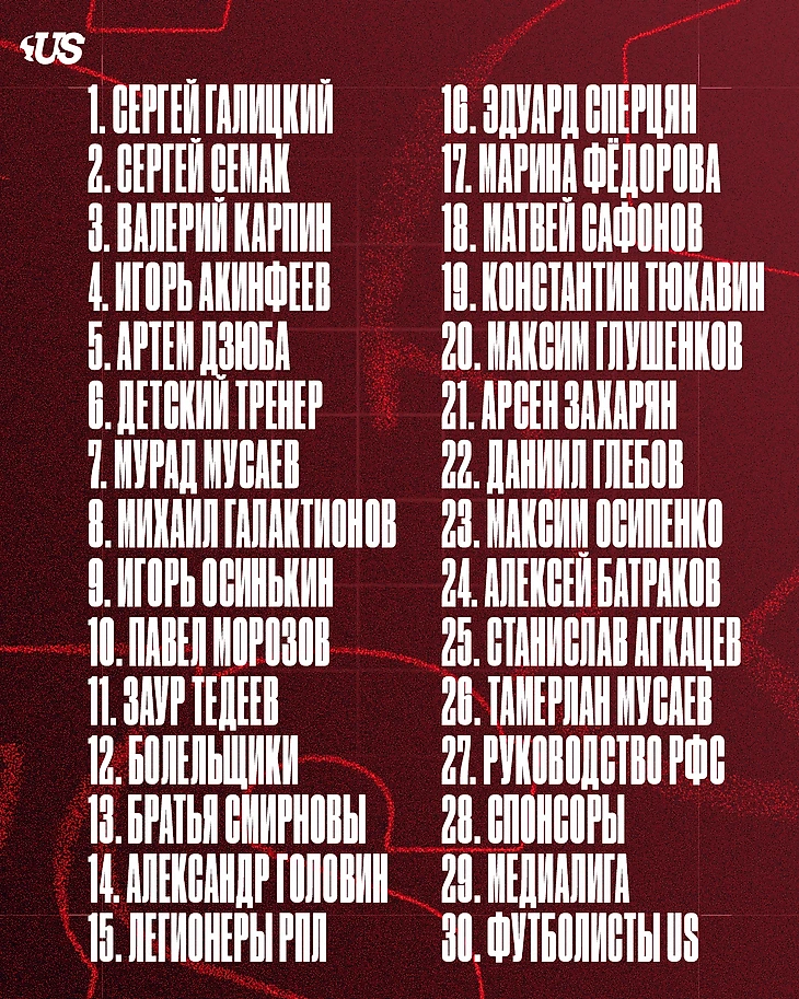 30 влиятельных людей российского футбола от футбольного агентства Ultimate Sports