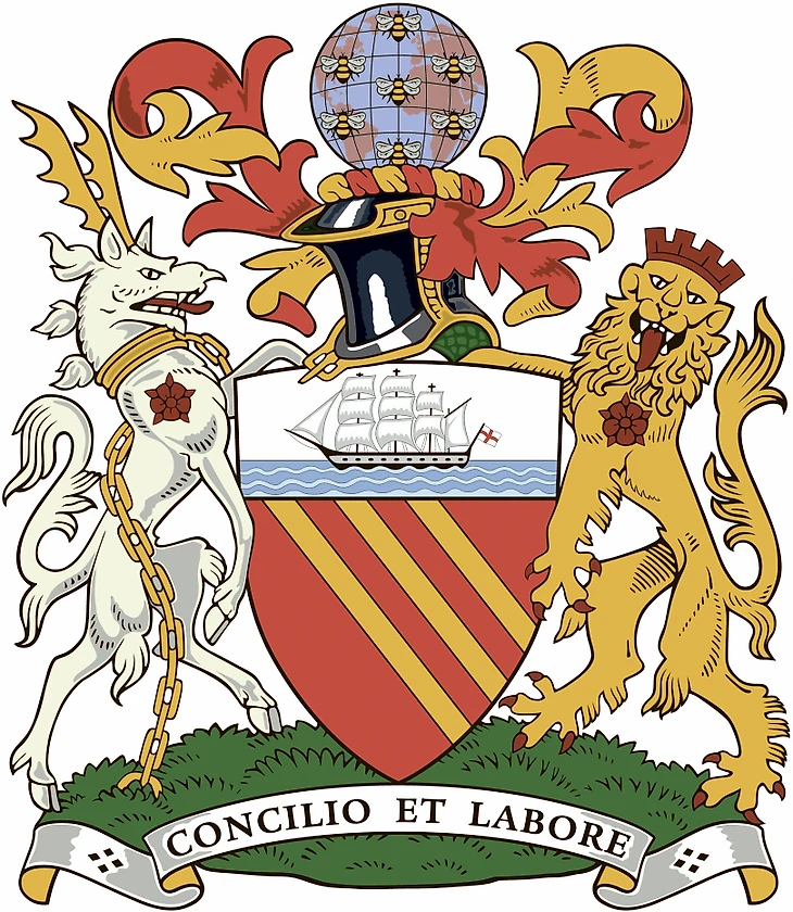 Долгое время клуб играл под гербом Манчестера. Изображение использовалось с 1894 по 1964 год. Знаменитый корабль в композиции олицетворяет судоходный канал Манчестера.