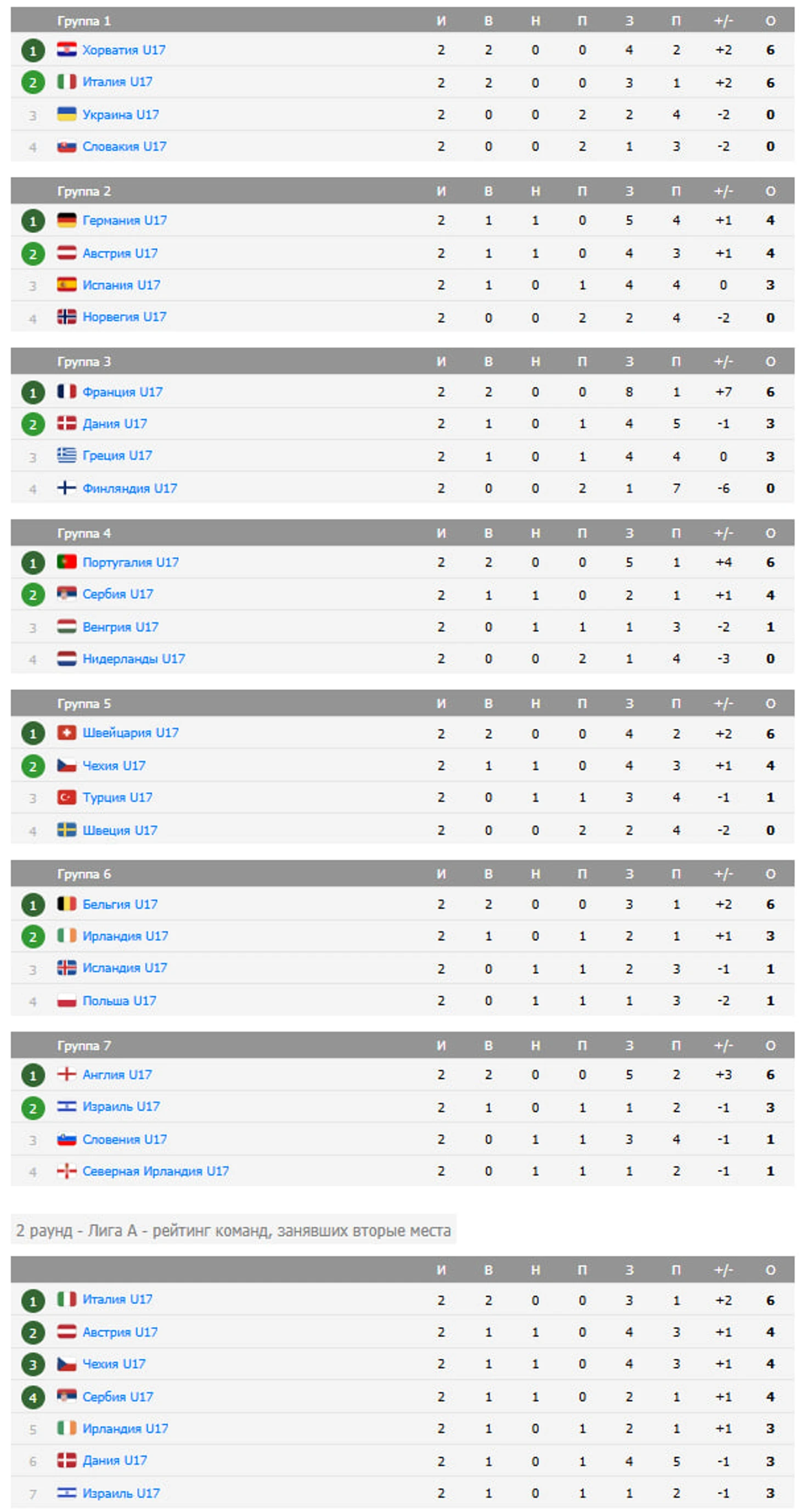 Здесь также прошло два тура. Посмотрим на таблицы и поговорим о раскладах.