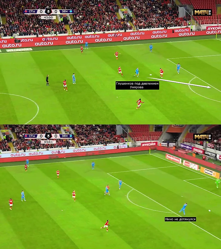 При этом Глушенков захлебнулся в потерях, неуместном дриблинге против двух-трех соперников, неопасных кроссах и проигранных дуэлях против опорников.
