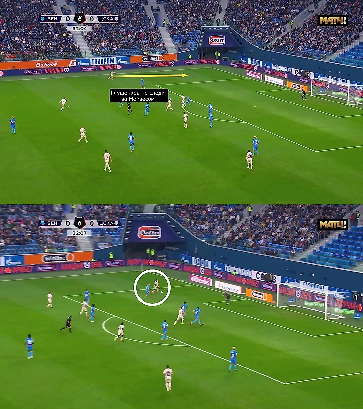 Против ЦСКА Глушенков забивал на Мойзеса, а Семак уже на 37-й минуте поменял его местами с дисциплинированным Гонду.
