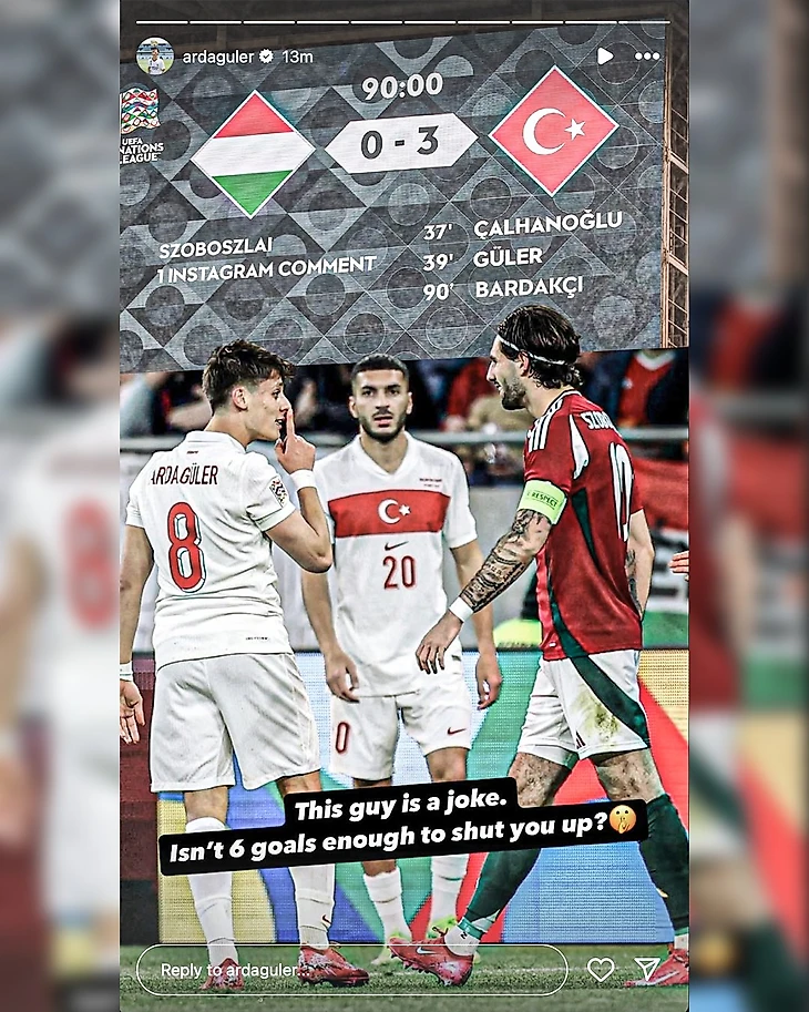 «Посмешище». Троллинг от Собослаи не прошел мимо Гюлера – Арда жестко ответил Доминику в соцсетях 🤬