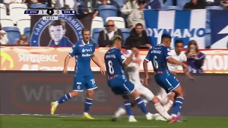 Здесь очевидно, что первым мяча коснулся Татаев (в белом), чуть-чуть опередив Хорхе (в синем), после чего произошел контакт игроков. Оренбуржец сделал «кувырок вперед» и начал требовать штрафного, а динамовец продолжил игру и нанес голевой удар. Абросимов (главный) гол засчитал, а ВАР после долгого просмотра решение оставил в силе. Хотя конечно здесь есть причина «докопаться» до Абросимова: по траектории полета мяча после контакта (в сторону ворот, а не к боковой линии) ему явно показалось, что последним мяча коснулся Карраскаль, а на самом деле - очень неудачно попал по мячу сам защитник. Так что это не совсем точная копия момента из игры Пари НН - Краснодар, скорее - Спартак - Зенит (Мантуан и Мартинс). Так что перед ВАР Цыганком стояла дилемма: указать на отсутствие игры в мяч Карраскаля и гол отменить, или последовать трактовке контакта как ненаказуемого. Он выбрал второе - явно исходя из последних «вводных» от руководства ДСИ РФС. Сама же игра ничего примечательного с точки зрения продвинутой статистики не показала: по xG команды набрали за игру 2,25 - 0,76, по BigChance 5-1. Так что итоговый счет 5:1 метрикам xG соответствует на 100%.