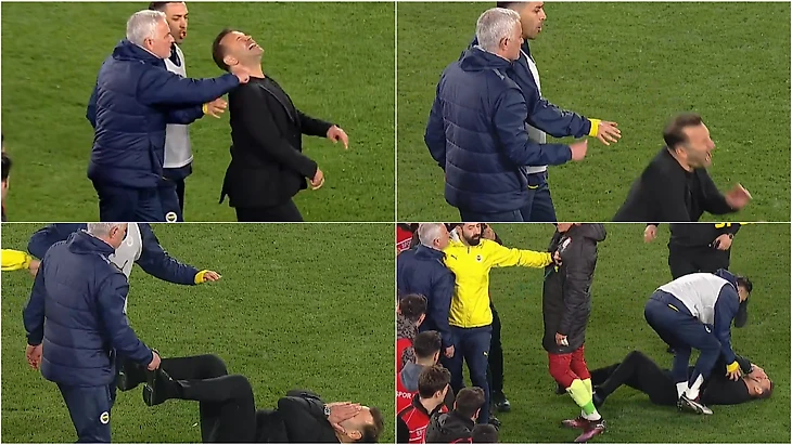 Моур ущипнул коллегу Окана Бурука, он упал, схватившись за лицо.