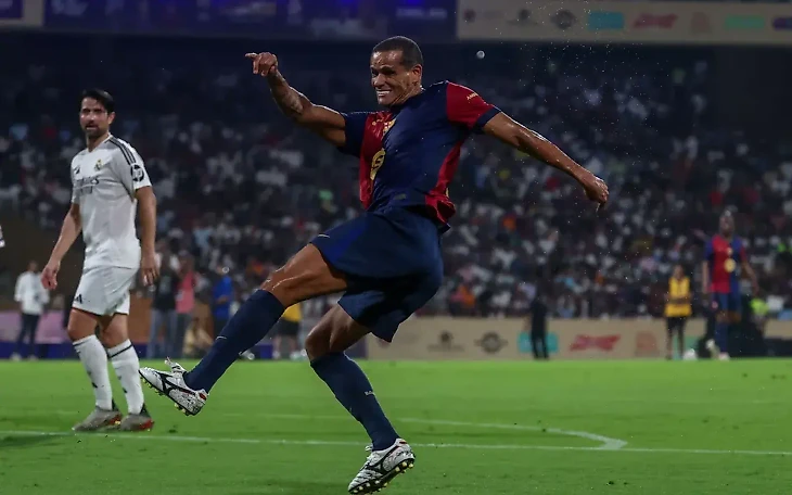 В воскресенье в Индии прошло выставочное класико, где сошлись легенды «Барселоны» и «Реала». За каталонцев снова вышли на поле Хави, Пуйоль, Ривалдо, Клюйверт, Франк де Бур.