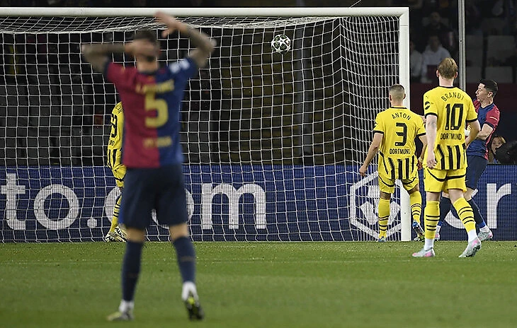 Рафинья забил победный мяч в домашнем четвертьфинале Лиги чемпионов, «Барселона» повела у «Боруссии» Д благодаря его касанию.