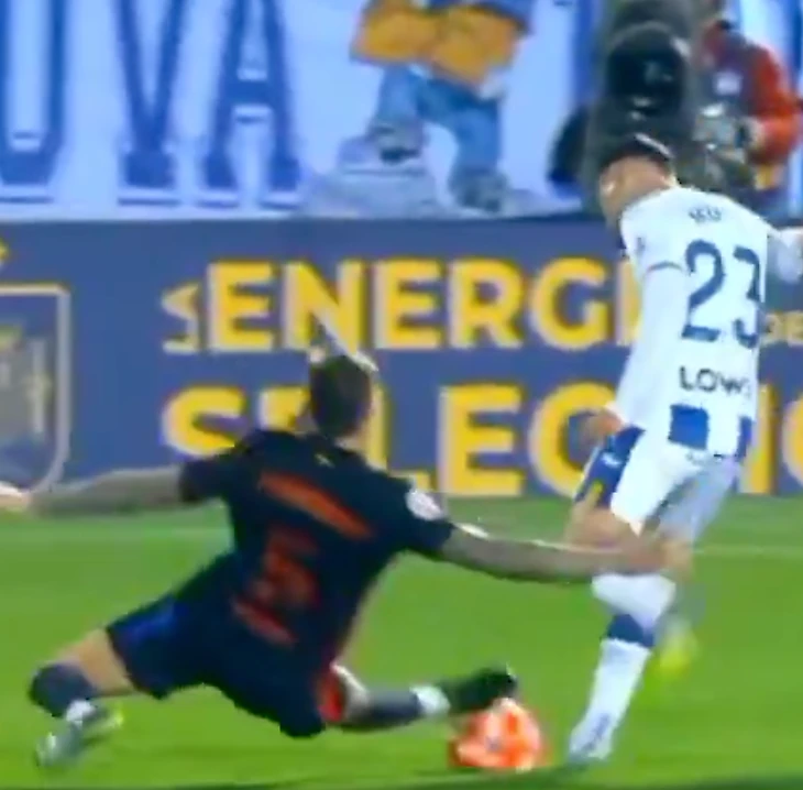 Центральный защитник «Барсы» исполнил идеальный подкат. Вот он с разных ракурсов.