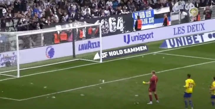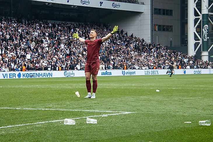 После стычки вратарь «Брондбю» Патрик Пентц не торопился вводить мяч в игру – фанаты «Копенгагена» его за это освистали и закидали стаканчиками. Австриец лишь улыбался, а после финального свистка устроил представление: демонстративно поклонился фанатам и принял на себя летящие предметы в стиле Эммануэля Адебайора.