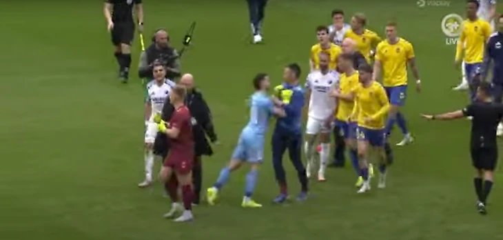 В какой-то момент в дело вступил голкипер «Копенгагена» Диант Рамай – он схватил за грудки запасного вратаря соперника Томаса Миккельсена, который ранее пытался защитить Пентца.