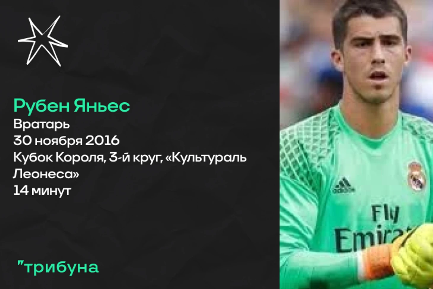 В том же матче, что и Энцо Зидан, за основу «Реала» единственный раз вышел и вратарь Рубен Яньес. Он заменил во втором тайме Кико Касилью и не пропустил ни одного гола за отведенные ему четырнадцать минут основного времени матча. В 2017 году Яньес свободным трансфером перебрался в «Хетафе», но играл там редко и мало, в основном будучи вторым вратарем. Были аренды в «Кадис» и «Уэску», а с 2023 года Рубен является основным голкипером хихонского «Спортинга», на данный момент выступающего в Сегунде. Бывшему футболисту молодежной сборной Испании сейчас тридцать один год.