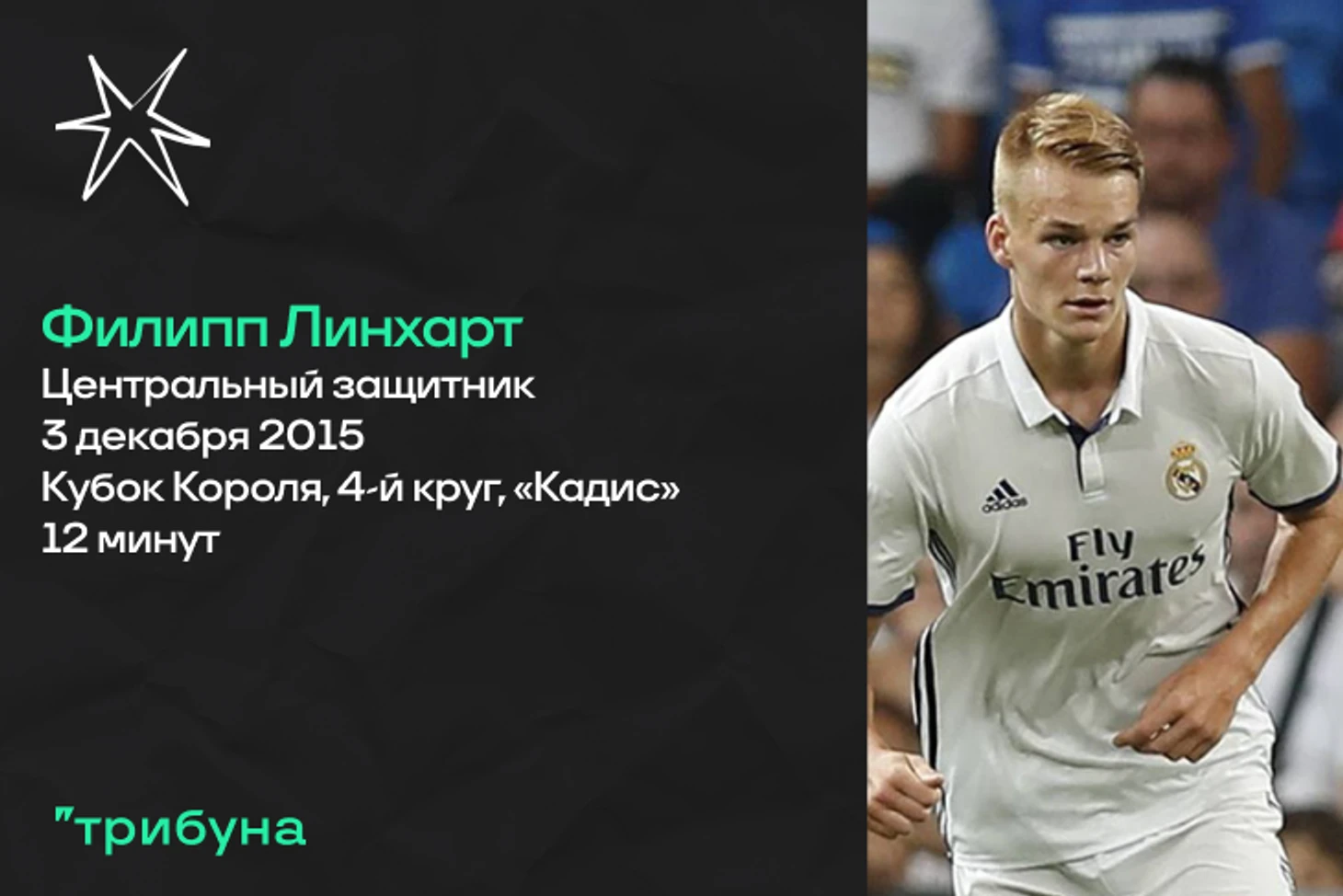 Австрийский воспитанник венского «Рапида», перешедший в структуру «Реала» в 2015 году за 800 тысяч Евро, дебютировал за основу «сливочных» в легендарном матче. Это была кубковая встреча со скромным по тем временам «Кадисом», в которой Линхарт вышел на замену на последние двенадцать минут (вместо Хамеса). Первый же гол мадридцев в той игре забил Денис Черышев, которому, как выяснилось чуть-чуть позже, нельзя было принимать участие в этом поединке — по причине полученной еще в прошлом сезоне дисквалификации. В итоге, дальше прошел «Кадис». Филипп Линхарт же еще пару лет поиграл за «Кастилью», прежде чем перебрался в немецкий «Фрайбург» в 2017 году. За этот клуб защитник выступает и по сей день, суммарно набрав уже более двухсот выходов на поле за него. Сейчас игроку сборной Австрии двадцать восемь лет.