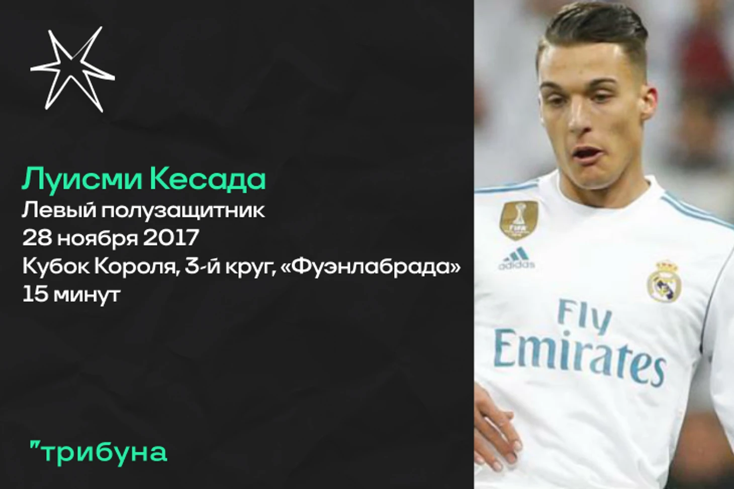 В том же кубковом матче с «Фуэнлабрадой», что и Оскар Родригес, за основу мадридцев дебютировал и Луисми Кесада. Но здесь ситуация полностью повторяет случай Кагельмахера и Тебара — один сменил на поле другого. Дальнейшая карьера Луисми, хоть и родившегося в Мадриде, но всегда представлявшего Доминиканскую Республику (как и великий Мариано Диас), вышла весьма интересной. Сначала он выступал за «Кастилью», ездил в аренду в «Кордову», а в 2019 году свободным агентом переехал в «Кадис», тогда из Сегунды. Далее были «кресты», год без клуба и, казалось бы, уход из футбола. Но в 2022 году Кесада стал игроком узбекистанского «Сурхана». Потом был второй японский дивизион и переезд в Доминиканскую Республику, где двадцатидевятилетний футболист местной сборной играет и сейчас.
