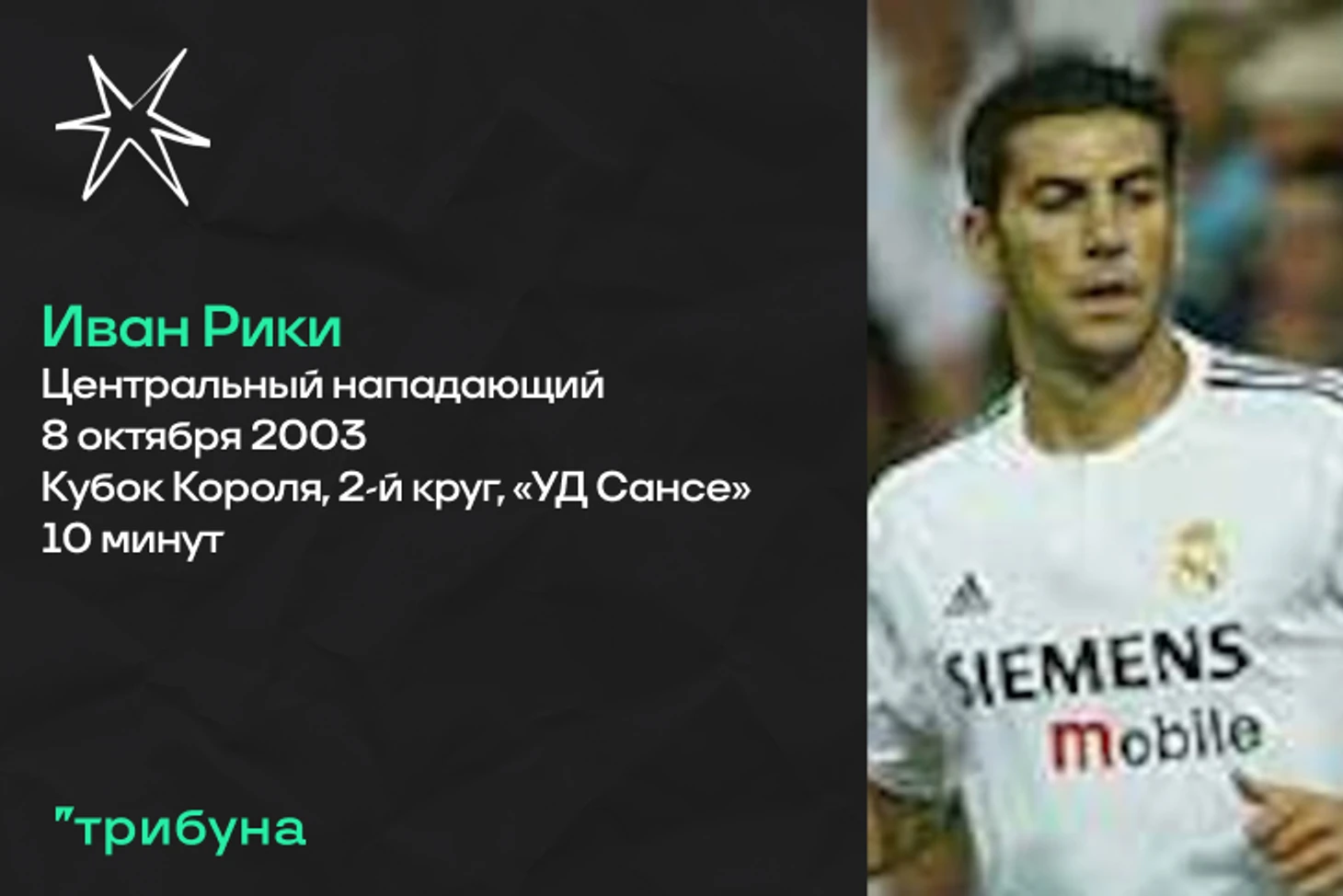 Рики, или же Иван Санчес-Рико, тоже является воспитанником «Реала». За основу он, как и все в этой статье, сыграл только однажды – в матче Кубка Испании в 2003 году. Тогда форвард заменил Гути на последние десять минут победной игры. В 2004 году он перешел в «Хетафе», где за два сезона смог себя весьма неплохо показать. Далее был трансфер в «Депортиво» за 4.64 миллиона Евро. В галисийском клубе Рики провел семь сезонов, лучшим из которых стал последний – 2012/13, когда уже немолодой испанец забил за Чемпионат Испании тринадцать голов. Затем было еще два года в «Гранаде» и уход в низшие лиги. Он завершил карьеру в 2016 году. Сейчас бывшему нападающему «Реала» сорок четыре года.