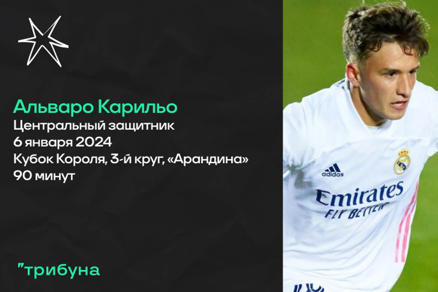 Первый представитель современной эпохи в подборке. Воспитанник клуба в 2020 году перешел в состав «Кастильи», где провел четыре года. Единственный шанс в главной команде Альваро получил в матче Кубка Испании против команды из низшего дивизиона, где Анчелотти выпустил дублирующий состав. Встреча завершилась победой мадридцев, а Карильо провел на поле все девяносто минут. Летом того же 2024 года защитник покинул «Реал», перейдя на правах свободного агента в «Эйбар» из Сегунды. Двадцатитрехлетний футболист, игравший за молодежную сборную Испании, является игроком ротации в своем нынешнем коллективе.