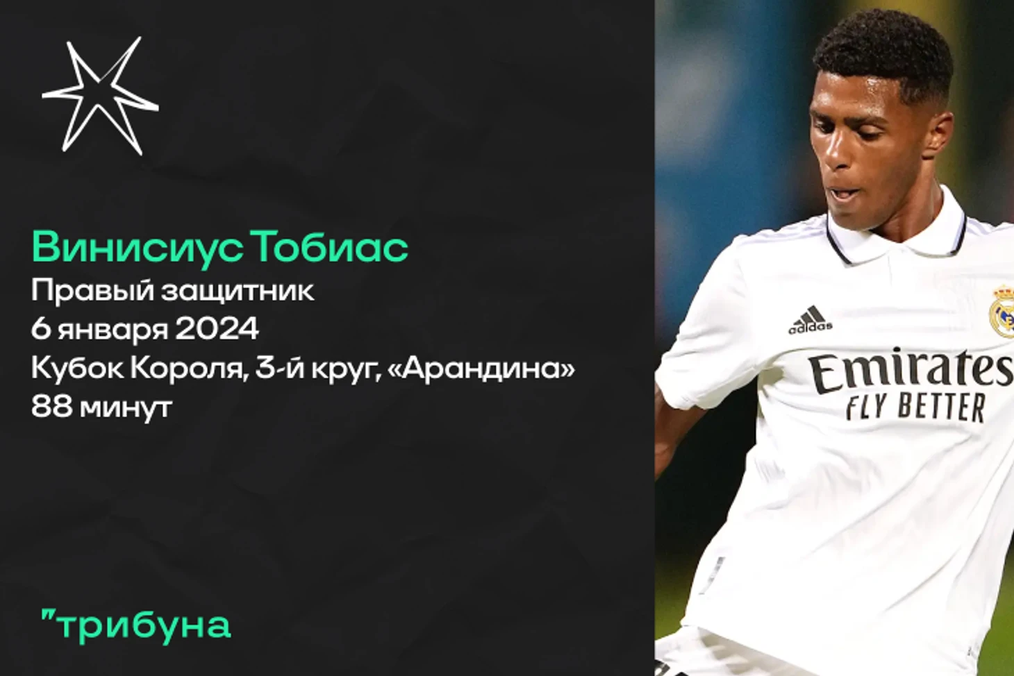Винисиус, да не тот. Воспитанник бразильского «Интернасьоналя» перешел в систему «Реала» в 2022 году за 500 тысяч Евро (аренда из донецкого «Шахтера»). Интересно, что в стан «горняков» защитник переходил той же зимой, но за 6.00 миллионов Евро. Более двух лет находясь в «Кастилье», Винисиус получил-таки возможность сыграть за основу -- в матче Кубка со скромной «Арандиной». К слову, тогда же сыграл и уже упомянутый Альваро Карильо. Больше Тобиас за мадридцев не играл, вернувшись в «Шахтер» летом 2024 года. На данный момент двадцатиоднолетний экс-игрок бразильских молодежных сборных продолжает выступать за донецкий коллектив.