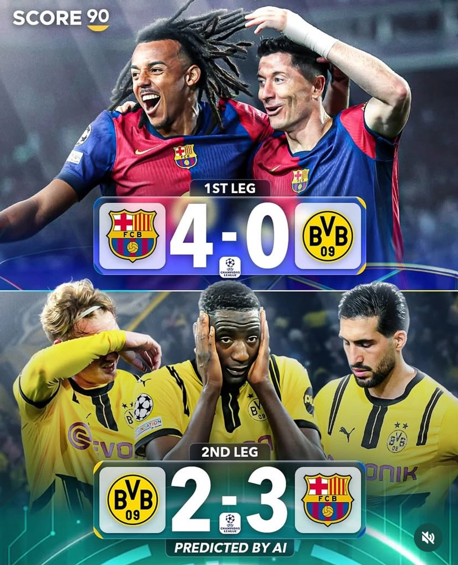 Сегодня «Боруссия» попытается сохранить лицо в ответном матче ЛЧ с «Барселоной». Итоговый успех маловероятен, но ИИ видит голевую феерию.