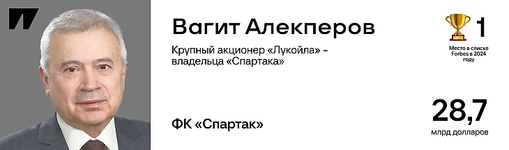 В некоторых случаях непонятно, корректно ли включать в наш спортивный рейтинг людей, отошедших от активного бизнеса. Например, одни из самых богатых людей России Вагит Алекперов (№1) и Леонид Федун (№12) в июне 2022-го покинули топ-менеджмент «Лукойла», а через пару месяцев передали компании акции «Спартака» (а Федун покинул пост президента клуба). Имеют ли они теперь отношение к «Спартаку»?