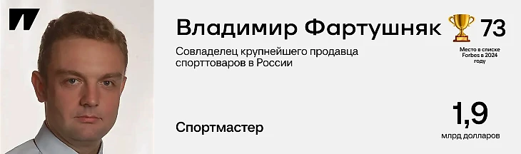 Интересно, что лишь для одного героя нашего списка спорт – источник заработка, а не хобби и не благотворительность. Речь про совладельца сети «Спортмастер» Владимира Фартушняка. Других людей, кому спорт позволил бы сколотить состояние свыше миллиарда долларов, в списке Forbes нет. И пока не предвидится.
