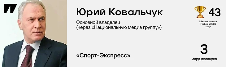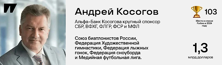 Теперь важные доноры профессионального спорта – не бюджетные организации, а компании с государственным участием: «Газпром», «Ростех», «ВТБ», РЖД, ВЭБ РФ, «Роснефть» и так далее. Но частные деньги тоже есть: например, их вкладывают минимум 35 российских миллиардеров из списка Forbes. Ровно четверть!