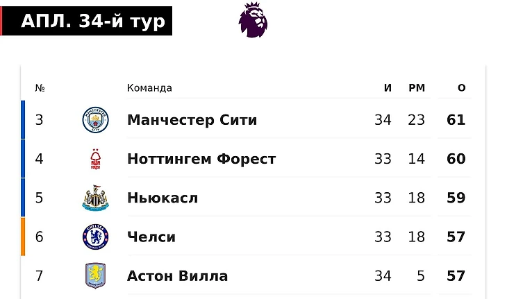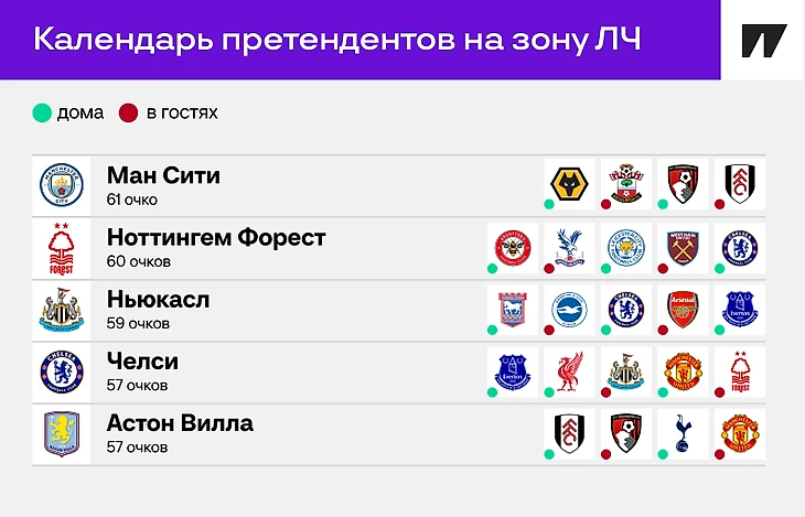 Самое сложное расписание у «Челси». С другой стороны, очные матчи с «Ньюкаслом» и «Ноттингемом» – шансы подвинуть конкурентов, которые сейчас выше. А «Ливерпуль» и «МЮ» уже без турнирной мотивации.